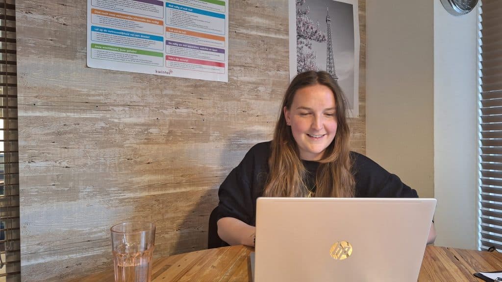 Camille leerde Kwintes kennen toen ze als coördinator werkte bij een kringlooporganisatie. Ook bewoners van woonlocaties van Kwintes doen daar dagbesteding of werken aan hun re-integratie. ‘Een fijne werkplek, maar wel met veel regelwerk en contact met regionale partners. Ik kreeg juist energie van het persoonlijke contact met de deelnemers, en besloot daar meer mee te doen.’